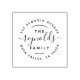This stamp is an excellent choice for any family looking for a return address stamp for their mail. This design features your family name in the middle in a rustic hand-lettered script and your return address around the outside giving the stamp a round shape. To add your own details, simply click the "personalise" button and type them into the text boxes that appear.