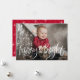 Show off your favourite family photo this season with this fun and festive holiday card featuring “Merry & Bright” in a white hand-lettered script overlay with a soft gradient effect that helps the text stand out. The design reverses to a Christmas red background with a white star pattern, creating a cheerful and modern holiday look.