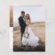 Elegant and simple wedding thank you template 2-sided card featuring a hand lettered typography script text with a heart between the words. Add your favourite photo full bleed in the front and another photo in the back with default message on the back that is editable.