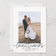 Elegant and simple wedding thank you template 2-sided card featuring a hand lettered typography script text with a heart between the words. Add your favourite photo in the front and another photo in the back with default message on the back that is editable.