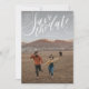 This save the date features hand lettered "save the date" over a vertical photo. This template also has a backer design for an optional additional photo and details like your wedding website. The charcoal colour on the back can be changed to any colour you'd like in the customisation window!