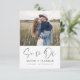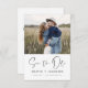Modern and Elegant Photo Save the Date Wedding Card. The save the date invitation card includes white Hand Lettered typography and chic and simple design on a white background that you can add your customised engagement photograph picture to.