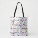 Hand made colourful circles and letters pattern over white background . Customisable tote bag template