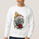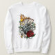 Original vector art of a hand holding playing cards that are on fire. With gold coins, dice, 8 Ball, Ribbon and a rose.