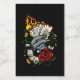 Original vector art of a hand holding playing cards that are on fire. With gold coins, dice, 8 Ball, Ribbon and a rose.