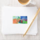 Hand-Painted Abstract Watercolor Blue Orange Green Label