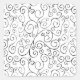 Hand-painted black curves swirl, meet, and diverge in this all-over repeat design on a white background. The curvy lines end with scroll designs. The decorative image is both free flowing and delicate.
