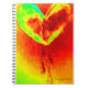 Bright orange, red and yellow spiral notebook. Hand painted picture of a bleeding heart on cover. Perfect for jotting down your thoughts as a journal, school notes or as a gift.
