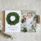 Hand Painted Boxwood Wreath Happy Holidays Photo Holiday Card