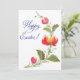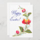 Celebrate Easter with this exquisite hand-painted greeting card featuring a traditional Petrykivka floral design. The artwork showcases a graceful arrangement of red and orange blossoms with delicate brown accents, lush green leaves, and charming blue flowers.