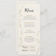 Featuring hand-painted gold leaves and flowers, this wedding manu has a whimsical design with customisable black and gold typography on a cream paper texture background.