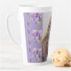 Hand Painted Purple Tuxedo Cat floral Latte Mug. A glorious watercolor floral design. Designed from my original watercolor paintings, that I painted from my own flower garden.