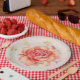 These hand painted rose (or peony) paper plates will bring instant cheer to your party or get-together. The flower is surrounded by golden bees on a white background. Price is for one plate. Please choose a size and quantity.