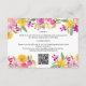 This vibrant wedding details card showcases hand-painted spring and summer florals in vivid pink, yellow, and green hues. The front provides essential reception and accommodation details, while the back includes RSVP instructions, dietary request options, and a QR code for additional information. Perfect for adding elegance and clarity to your wedding plans.