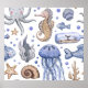 Discover the ocean's wonders through this watercolor hand-painted pattern.