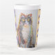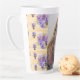 Hand Painted Yellow Tuxedo Cat floral Latte Mug. A glorious color pencil drawing & watercolor floral design. Designed from my original watercolor paintings, that I painted from my own flower garden.