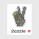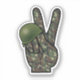 * Camouflage military pattern in hand peace sign with helmet over the fingers.