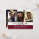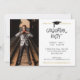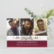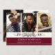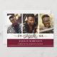 Three thin faux metallic gold lines accent the hand-lettered title GRADUATE and graduating year. The maroon or burgundy block of colour on the front is editable by changing the background colour to coordinate with your photos, school colours or graduation party theme colours. Showcase four of your graduate's senior pictures (three on the front and one on the back) along with your graduation party invitation details.
