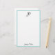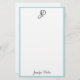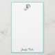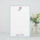 Hand Script Monogram Name Simple Modern Template Personalised Blue Green White Stationery Paper.
