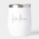 Get the party started with these beautiful personalised wine tumblers that are perfect for bachelorette parties, bridesmaids, or any occasion! Design features a name in black handwritten style cursive script typography.