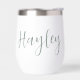 Get the party started with these beautiful personalised wine tumblers that are perfect for bachelorette parties, bridesmaids, or any occasion! Design features a name in dusty sage green handwritten style cursive script typography.