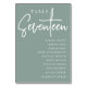 Simple and chic table number cards in Eucalyptus Green and white make an elegant statement at your wedding or event. Design features "table [number]" in an eyecatching mix of classic serif and handwritten script lettering, with individual guest names beneath. Design repeats on both sides. Individually numbered cards sold separately; order each table number individually from our collection.