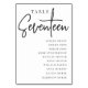 Simple and chic table number cards in classic black and white make an elegant statement at your wedding or event. Design features "table [number]" in an eyecatching mix of classic serif and handwritten script lettering, with individual guest names beneath. Design repeats on both sides. Individually numbered cards sold separately; order each table number individually from our collection.