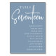 Simple and chic table number cards in Dusty Blue and white make an elegant statement at your wedding or event. Design features "table [number]" in an eyecatching mix of classic serif and handwritten script lettering, with individual guest names beneath. Design repeats on both sides. Individually numbered cards sold separately; order each table number individually from our collection.