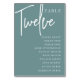 Hand Scripted Table TWELVE + Guest Names Table Number