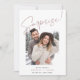 Haven't set the date yet, but can't wait to share the good news with family and friends? Announce your engagement with these simple and lighthearted photo cards, featuring a vertical or portrait-orientated photo with "surprise!" overlaid at the top in hand sketched lettering. Personalise with three lines of custom text along the bottom, including your announcement, names, and a note to stay tuned for further details.