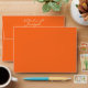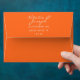A retro modern hand written bright orange wedding envelope. Which features bold bride and groom's names in cream. And personalized return address . On bold orange color background. Which suits the whole wedding suite.