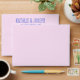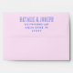 A retro modern hand written bright colourful wedding envelope. Which features bold bride and groom's names in blue colour. And personalised return address . On simple pale pink colour background. Which suits the whole wedding suite.