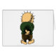 The figure turned his back to the viewer from the year 1973, and clasped his hands behind his back. The artist explained that the ten-year old represented his age when forced to leave Palestine and would not grow up until he could return to his homeland; his turned back and clasped hands symbolised the character's rejection of "outside solutions". Handala wears ragged clothes and is barefoot, symbolising his allegiance to the poor.