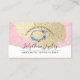 © 2023 Socialite Designs Inc. & LICENSORS. This elegant jewellery and beads business card design incorporates a gold and pink background, jewellery design elements (can be deleted and your own logo added), and curved text to catch the eye. An elegant business card that can be used for many types of jewellery designers and repurposed jewellery business.