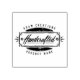 Handcrafted Label Rubber Stamp features a hand lettered typography of 'Handcrafted' in a label design. Product includes a template to customise with your name or company and handcrafted product.