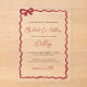Handdrawn Red Bow Coquette Modern Chic Wedding invitation