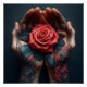 This beautiful piece of art is stunning on several levels. The perfect rose in the centre is shadowed by the tattoo rose on the wrist, which adds to the star’s perfection. The dark setting adds a bit of mystery to the mix.