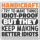 Funny Handicraft Sayings "Handicraft I Try To Make Things Idiot Proof But They Keep Making Better Idiots". Grab this Funny Handicraft design as a funny gifts for an awesome mum, dad or friend.