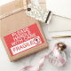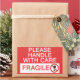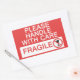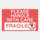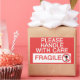 Sticker says "Please handle with care- Fragile" with a picture of a broken vase crossed through it.