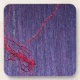 Vividly blue purple strands of hand made Thai silk with a single red thread running across.