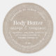Modern, rustic and simple organic homemade body butter label with the text handmade by, and your business website in white modern typography and elegant calligraphy on a kraft paper background. Simply add your name, business website, the product name, the ingredients and the weight to the label and you're ready to sell your handmade organic beauty products! Exclusively designed for your small business by Happy Dolphin Studio. If you need any help or matching products, please contact us at happydolphinstudio@outlook.com.