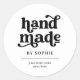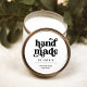 These trendy, boho black and white small business packaging labels feature black retro typography, on a simple white background. The text says "handmade", and there is room for your name or your company name, and the name of your product. A look that is both professional and stylish, and perfect for any type of product, such as candles, apparel, crafts, and ceramics.
