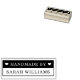 Rubber stamp featuring the text "Handmade by" flanked by two hearts and customisable name below.