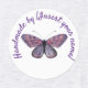 Pretty product labels for all your creations features "Handmade by [Insert Your Name Here]" customisable text in modern script font with purple butterfly watercolor illustration