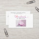 The front of this elegant modern card has an artistic girly chic feminine script typography font spelling out the word HANDMADE. The colors are pastel gradients ombre pink purple and violet.