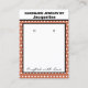 Handmade Jewelry by Name typography in black against white background. Terra Cotta and white polka dots. Crafted with love written in black script (keep or insert short tagline, or delete to leave area blank). Two Small Circles against white and black framed background. NOTE: Circles are not pre-cut, you will need to use a Small hole punch to make clean cut holes. Backside has small red heart. Insert telephone number, email address, website, social media handle, as needed. Insert Your Business QR Code for customers to Shop 24/7, or delete as needed. Original Design by TamiraZDesigns.