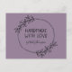 Simple greenery in a circular format with handwritten and script font overlaying earthy purple postcard.