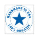 Handmade in USA rubber stamp with curved text around a star.