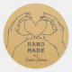 Handmade Kraft Paper Heart Hands Custom Artisan Classic Round Sticker