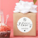 Handmade love script logo hearts black and white classic round sticker